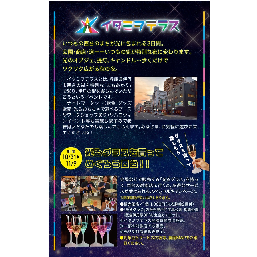 提灯を飾るお店や、「光るグラス」でサービスが受けられるお店・ハロウィン参加店などなどの情報を盛りだくさん掲載したガイドマップ(チラシ)ができました!