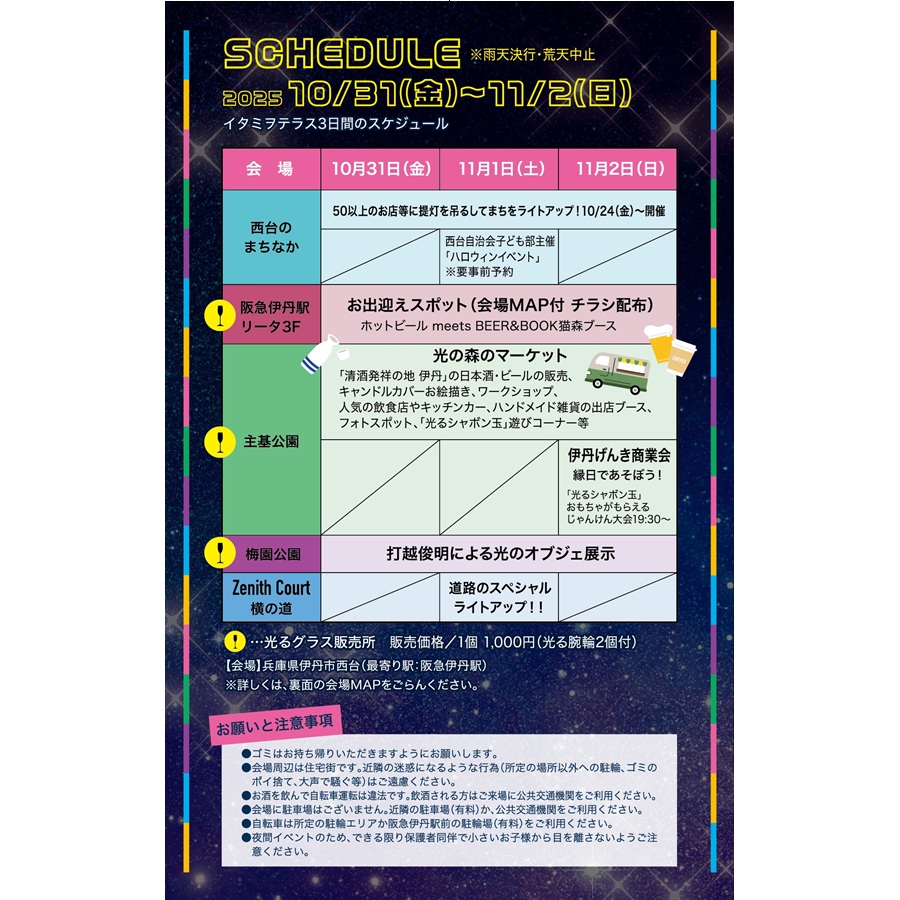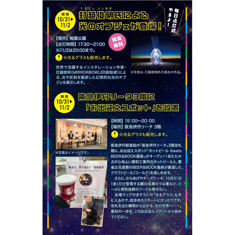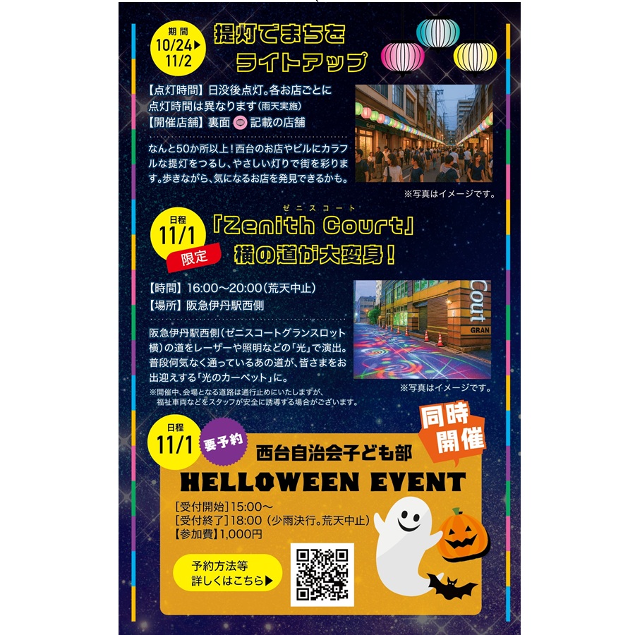 提灯を飾るお店や、「光るグラス」でサービスが受けられるお店・ハロウィン参加店などなどの情報を盛りだくさん掲載したガイドマップ(チラシ)ができました!